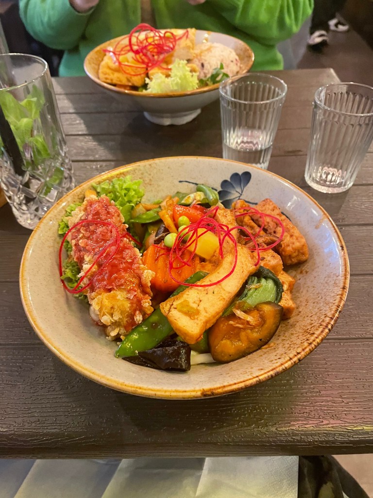 - evening meal at vegan oriental restaurant – yum!