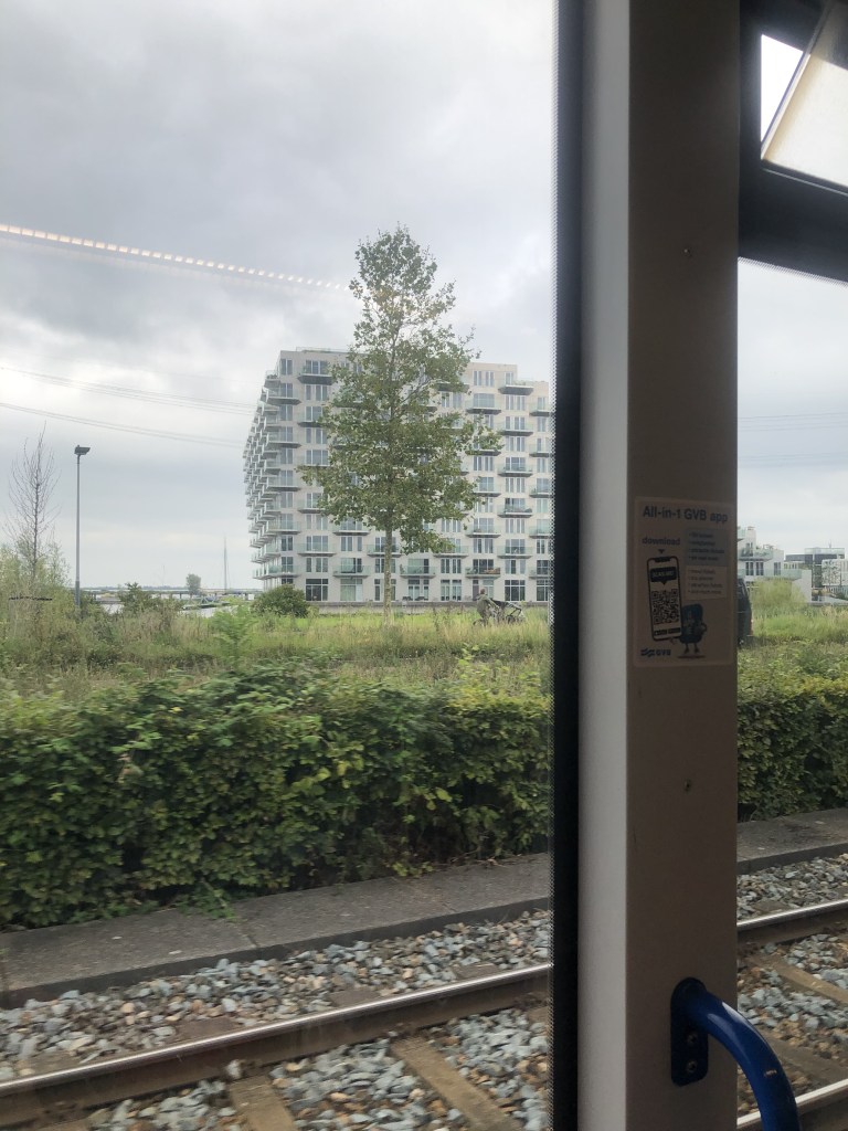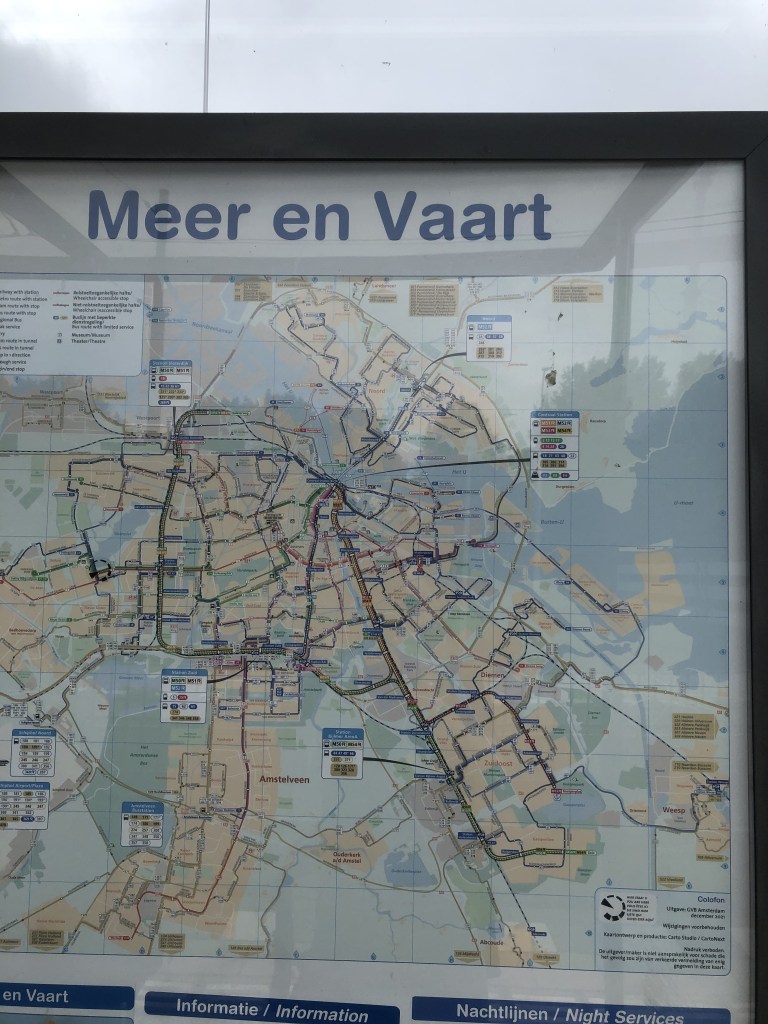 I have no photos from today, probably due to lack of sleep on the train. (ÖBB still hasn’t contacted me, almost a week later, to tell me whether or not it has found my laundry-bag.) However, cyclemeter reminds me we did a bus-tour. We didn’t go north of the IJ on that trip, but we did take the metro as far north as we could on the next excursion.
