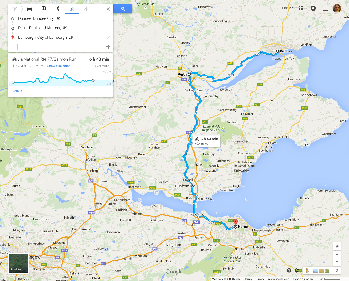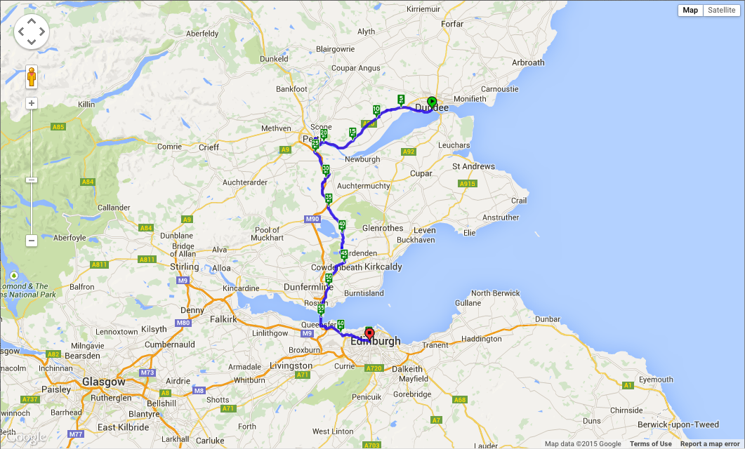 So I hit on cycling from Dundee via Perth to Edinburgh.