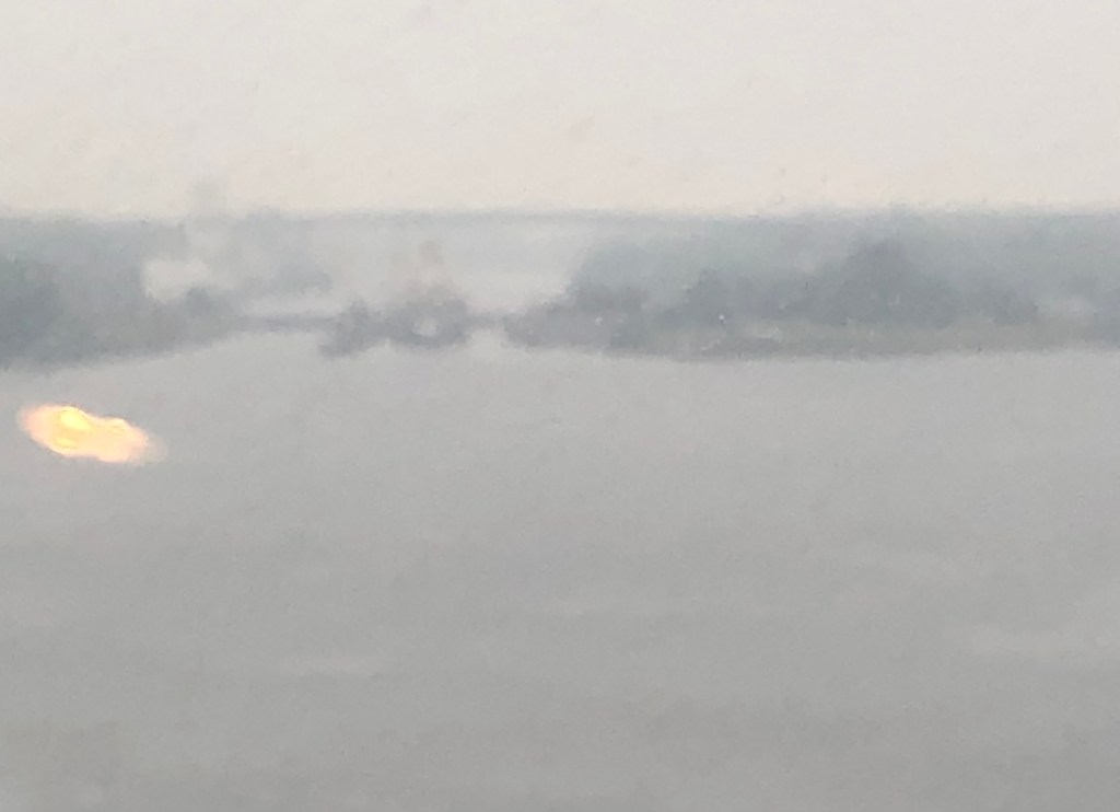 Really, what moron designed GM? Perhaps it’s the same tosser who thought hanging bikes vertically in trains is a good idea. Anyway, we eventually arrived at the ferry terminal, where we both cycled onto the boat, including going up a steep slope to the mezzanine deck. This was helped by slipstreaming from a couple of touring Harley-Davidsons in front of us. After that, there was nothing to do but sleep, eat, blog, sit and get lost on the way back from the smoking deck.